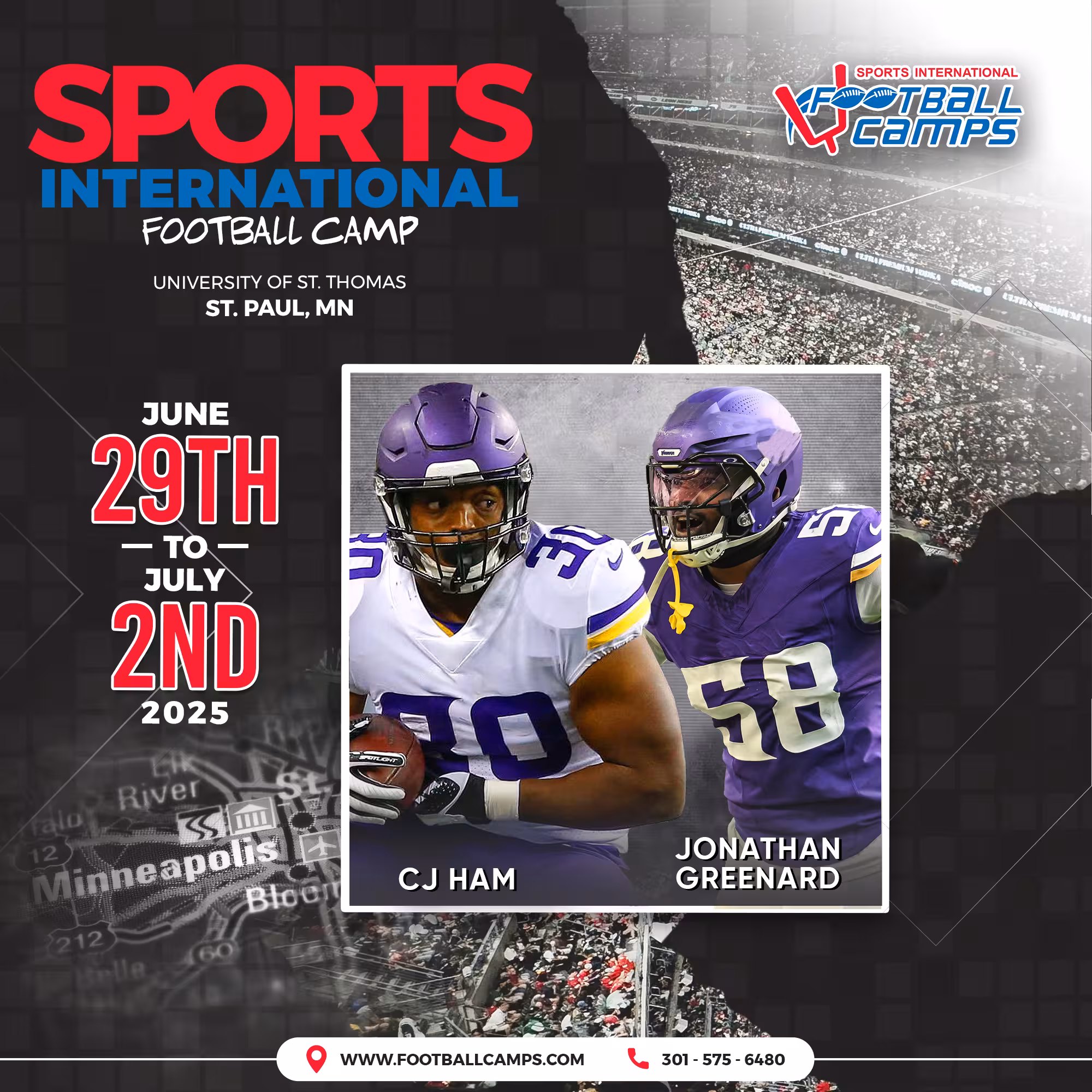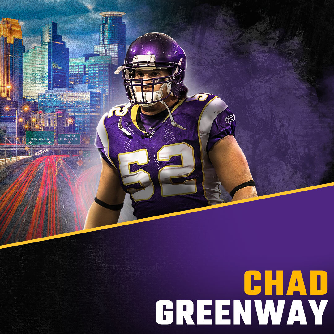 Chad Greenway is a former linebacker for the Minnesota Vikings in the National Football League. Greenway grew up in Mount Vernon, South Dakota, where he dominated in high school. He was named a three-time South Dakota All-State performer on the football field and was named the Gatorade Football Player of the Year as a Senior in high school in 2001! He played quarterback, free safety, and returned punts while in high school. Greenway also lettered in basketball, baseball, and track & field at Mount Vernon. Needless to say, he was a dominant high school athlete! After high school, he decided to attend the University of Iowa, where he would spend the next 5 years of his life. He redshirted as a Freshman at Iowa and was injured as a sophomore. However, he became a dominant presence for the Hawkeyes defense in his third year! As a redshirt sophomore, Greenway started at outside linebacker in all 13 games and was named a second-team All-Big Ten Selection. He continued that dominant trend in both 2004 & 2005 as an upperclassman. He was named an All-American as both a Junior and Senior, and was named a Bronko Nagurski Award finalist both years as well, given to the best collegiate linebacker in the country. After his dominant career at Iowa, Greenway declared for the 2006 NFL Draft and was selected in the 1st Round (17th overall) by the Minnesota Vikings! That proved to be a wise decision as Greenway would go on to have one of the best defensive careers in Vikings History. Over the next 10 years, Greenway would be a force in the middle of the Vikings defense and only missed 4 games in his entire career! He would finish his illustrious career with 760 tackles, 18 sacks, 8 forced fumbles, 11 interceptions, & 2 defensive touchdowns in 156 career games! We are so excited to have back Chad Greenway at our camp in 2025 in Minnesota after attending in 2024! Your chance to meet Chad Greenway and other members of the Minnesota Vikings is June 29th-July 2nd at the University of St. Thomas in St. Paul, MN. Don't miss out!