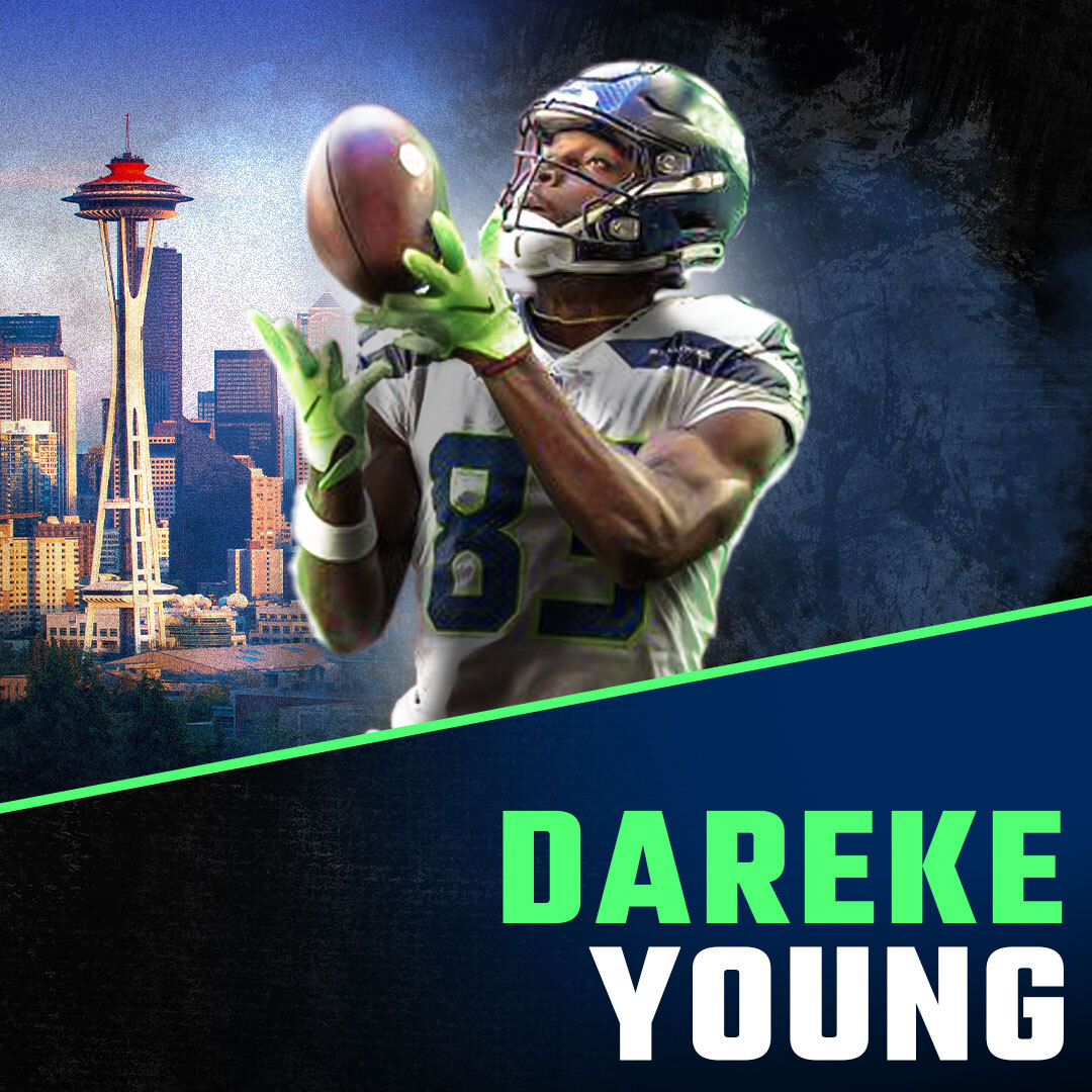 Dareke Young is a wide receiver who was selected by the Seattle Seahawks out of Lenoir Rhyne University. In his senior season, despite playing in just two games, Young made a huge impact on the season. In his two contests, Young finished with 14 grabs for 218 yards and a pair of touchdowns. Against Tusculum in the SAC Championship, Young recorded nine catches and 166 yards with one touchdown. The 166 yards represented the 10th most in a single game in the 101-year history of LR Football. He has the raw potential to become a strong player in the NFL! Dareke was selected in the 7th round of the 2022 NFL Draft by the Seattle Seahawks and has become a valuable depth piece for the Seahawks! Dareke was a featured instructor for our 2022 camp, and we are so excited to welcome him back in 2025! Your chance to meet Dareke Young and other members of the Seattle Seahawks is June 29-July 2, 2025! Don't miss out!