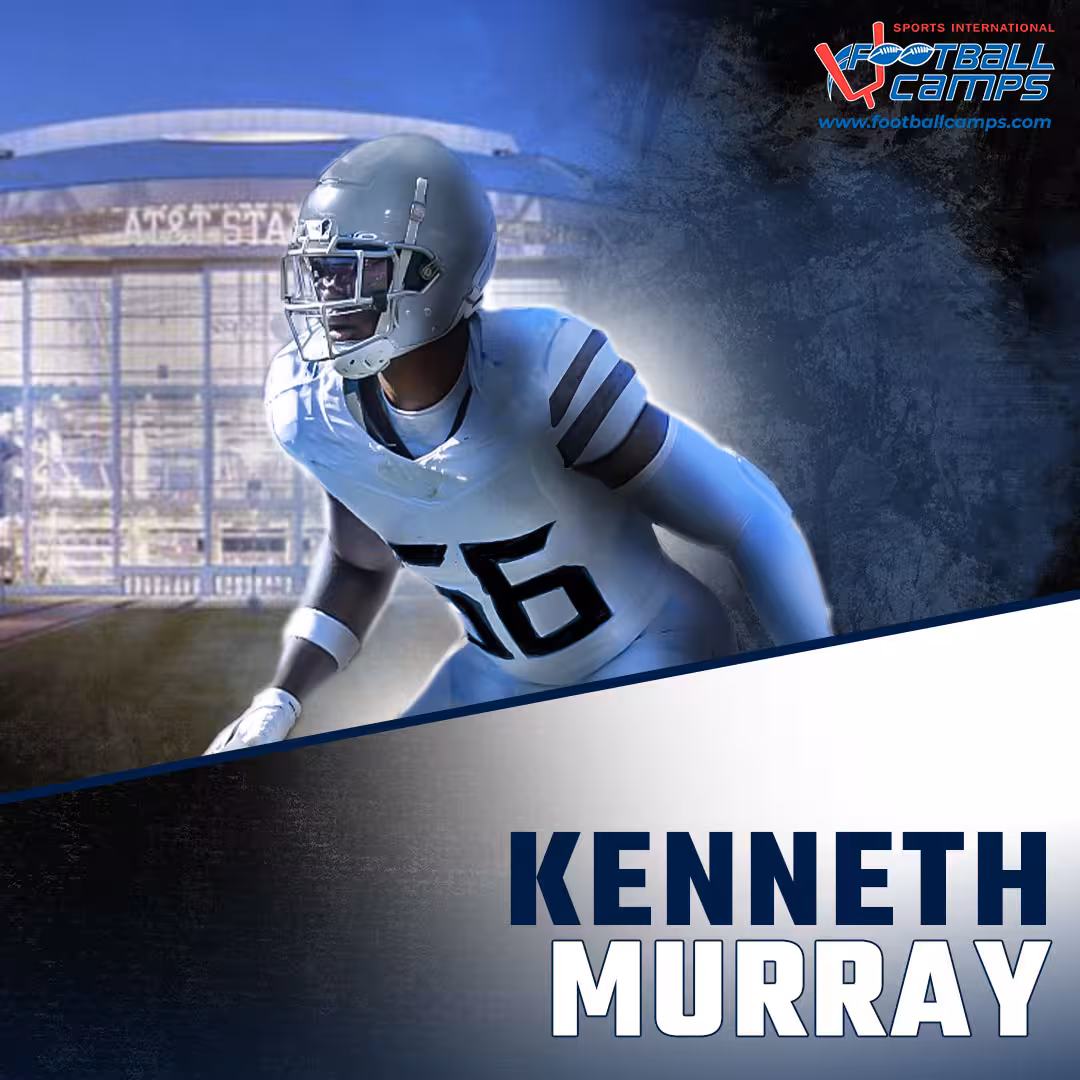 Kenneth Murray is a linebacker for the Dallas Cowboys in the National Football League. Kenneth grew up in Missouri City, Texas and attended Elkins high school, where he was a standout on the football field. He was one of the best high school recruits in the country as a senior and committed to the University of Oklahoma to play college football. At Oklahoma, he immediately became a starter as a freshman and recorded 78 tackles. He played in all 14 games as a freshman and was named the co-Big 12 Defensive freshman of the year! He followed that up with an even better season as a sophomore, recording 155 tackles and 4.5 sacks! Following his junior season where he was named to the First-Team All-Big 12, Kenneth declared for the 2020 NFL Draft. He would go on to be selected in the 1st Round (23rd overall) by the Los Angeles Chargers! In his Rookie season in 2025, Kenneth immediately became a starter at inside linebacker for the Chargers and played in all 16 games! He recorded 107 tackles as a Rookie. He followed-up his Rookie season with three more solid years as the Chargers starting linebacker, recording 214 tackles, 4 sacks & 2 interceptions during the 2021-2023 seasons. After the 2023 season concluded, Kenneth became a free agent and signed with the Tennessee Titans. In 2024, Kenneth played in 14 games and recorded 95 tackles, continuing to show that he was a tackling machine! After the 2024 season, he was traded to the Dallas Cowboys and will look to continue to be a starter for the Cowboys in 2025! We are extremely excited to welcome Kenneth Murray to our camp in 2025! Your chance to meet him & other members of the Dallas Cowboys is July 9-12, 2025, at the University of North Texas in Denton, TX. Don't miss out!